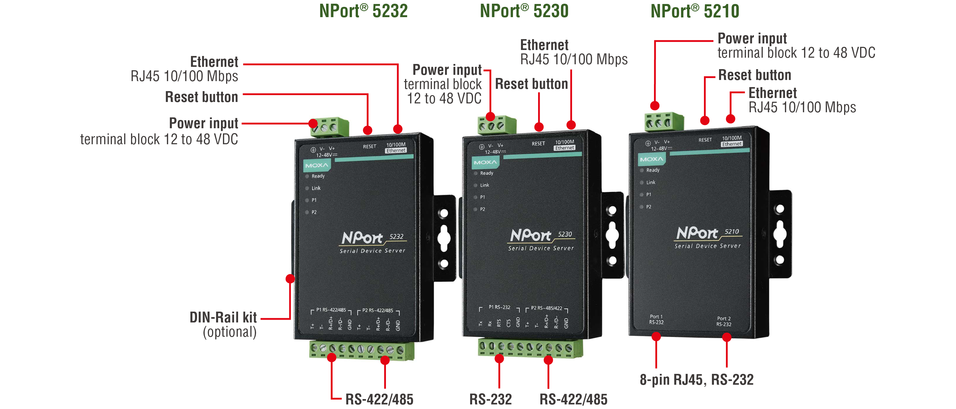 MOXA 2埠RS-422/485串列設備伺服器|NPort 5232