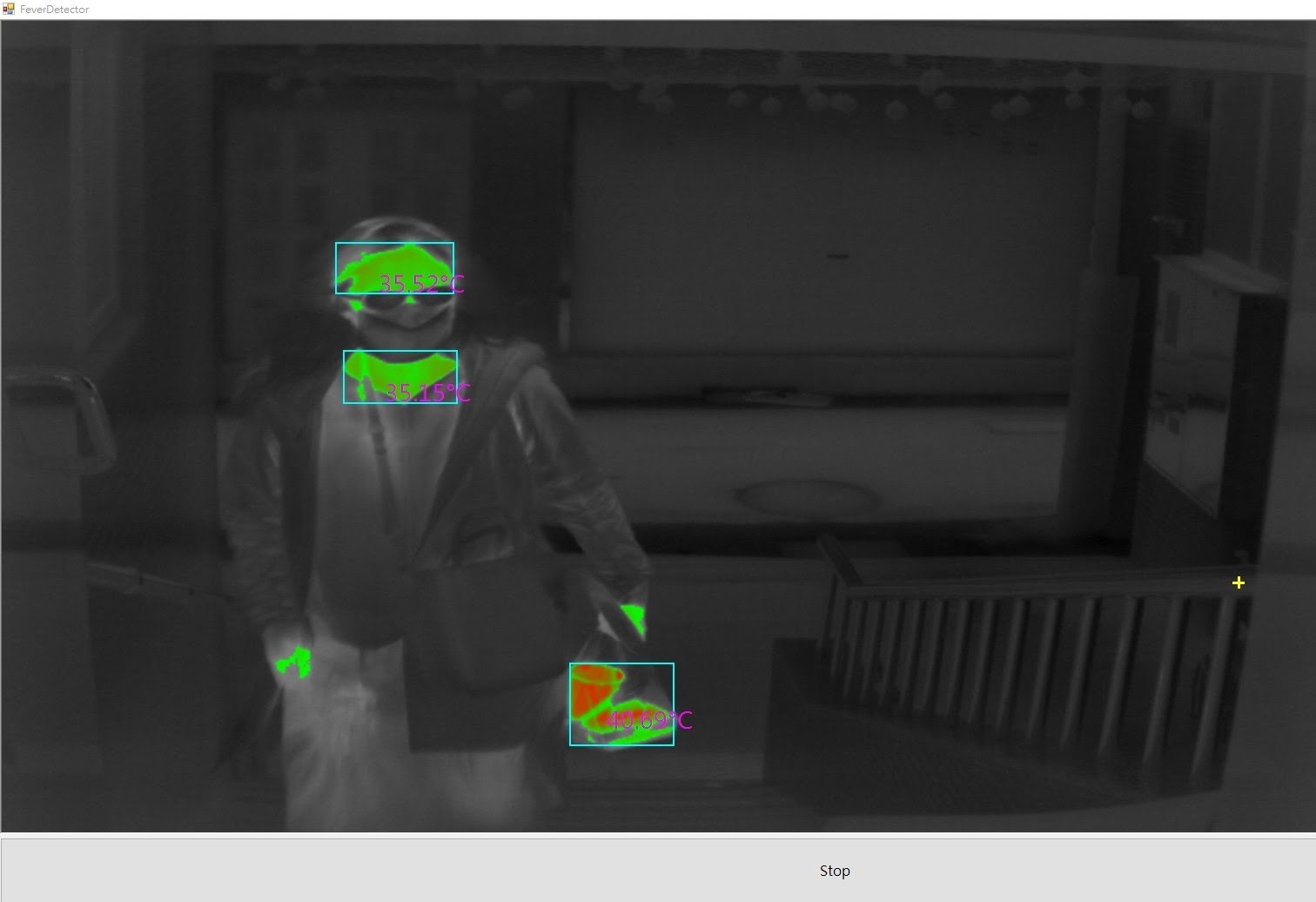 防疫時期提供您最快速的篩檢方式,超過高溫設定值顯示為紅色,在溫度檢測範圍內則顯示為綠色